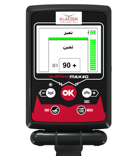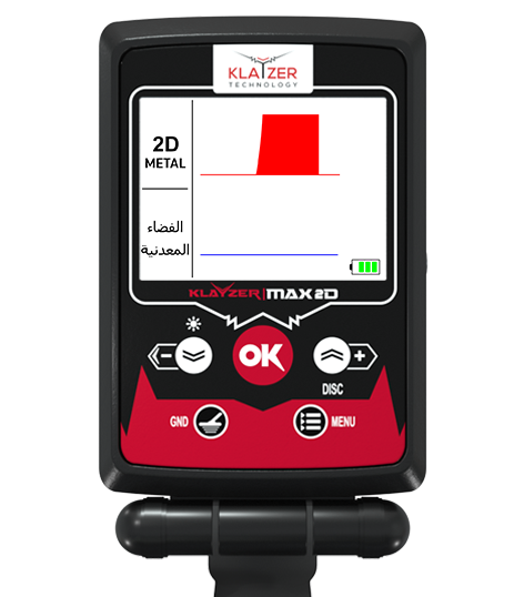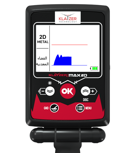 • يحتوي جهاز كلايزر ماكس للكشف عن المعادن على منحني راسم وأسلوب كشف مع شاشة ثنائية الأبعاد مزدوجة.