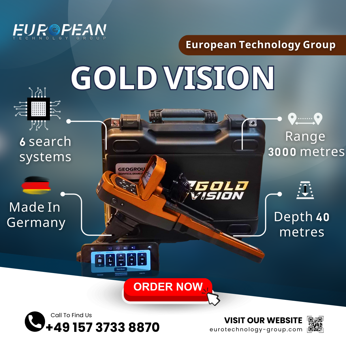 In the latest releases of Geoground, the gold and metal detector “Gold Vision” comes to the fore. With modern and advanced technologies and many easy-to-use features, it is possible to detect and explore minerals and buried treasures of all kinds. Buy Now From Germany Agent.